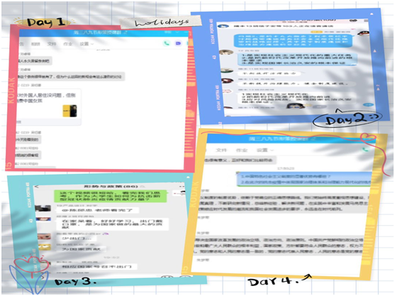 为了使学生更好地理解和掌握课堂内容,除了在正常的上课时间进行线上的教学和学习外,老师们还通过线下和学生交流、互动的形式去帮助学生巩固课堂知识,使学生能够进一步增强对课堂内容的熟知程度。