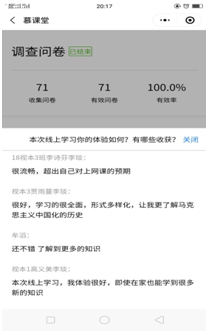 面临疫情防控的特殊时期,为贯彻和响应四川省教育系统、四川传媒学院有关疫情防控期间的相关教学指示和安排,努力做到“停课不停教,停课不停学”,马克思主义学院于3月2日开始了线上教学的第一次实践。虽然准备时各位老师对与第一次线上教学充满疑惑、顾虑,甚至有很多老师在开课前的晚上充满顾及,担心自己不能完全把控课堂、害怕操作出现纰漏、平台出现奔溃等各种不安的状况,但是,在领导的帮助和各位老师的共同努力,我们3月2号顺利开课,并且以良好的状态完成了第一周的线上教学。下面将从以下几个方面进行第一周线上教学实践的展示及反馈。