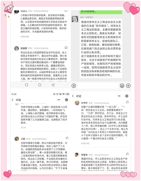 总体来说,本周授课较为顺利,通过课堂反馈发现学生有获得感,老师也有成就感。但目前仍然存在一些不足的地方:主要是部分学生对概论课程兴趣缺乏,参与课堂积极性不高,对课堂知识内容理解不够深刻等。建议在今后授课过程中,任课教师能够针对问题改进教学,培养学生的学习兴趣,提高学生参与课堂的积极性,同时不断优化教学方法,努力提升概论课程教学的实效性。