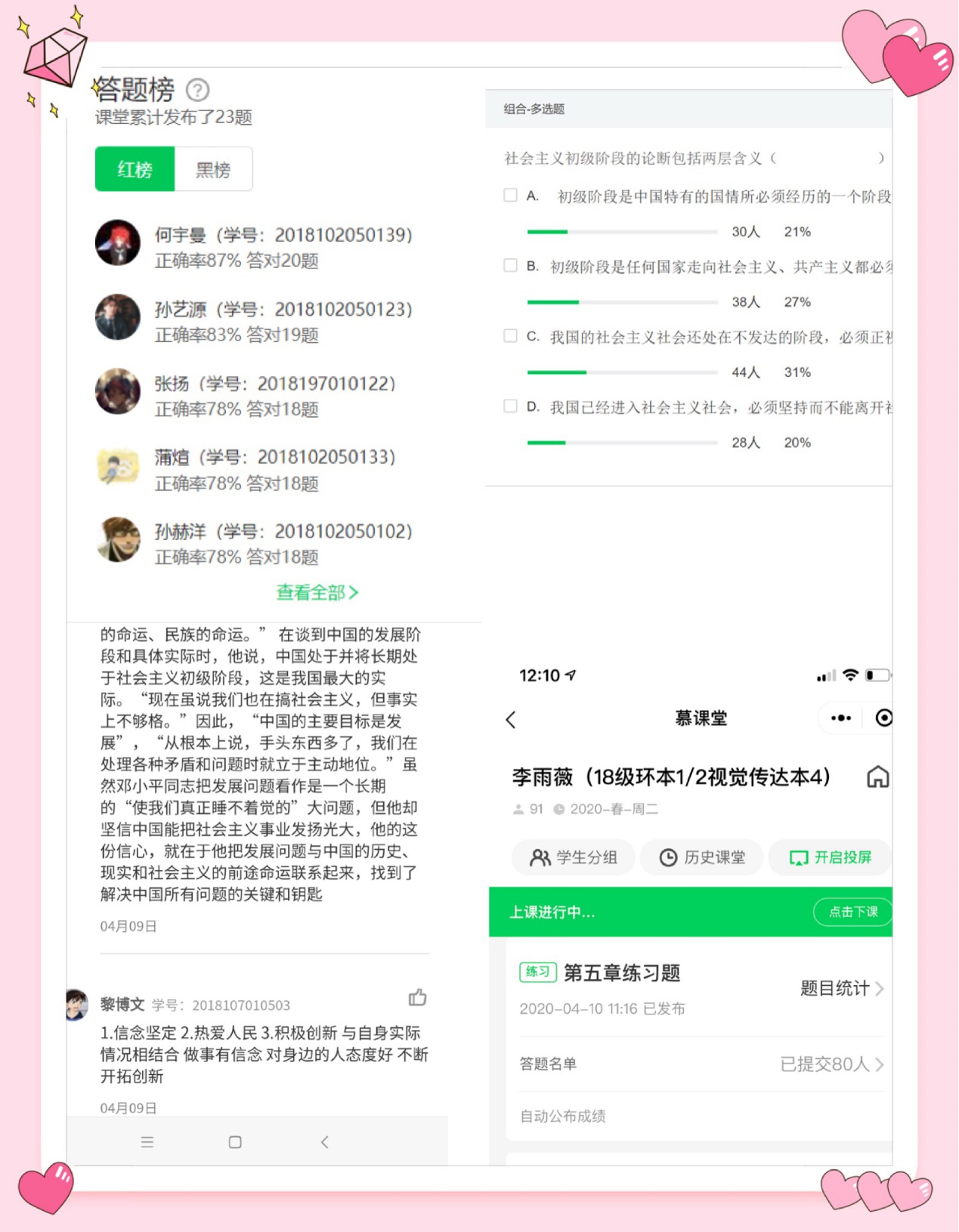 学生优秀笔记 学生做题情况