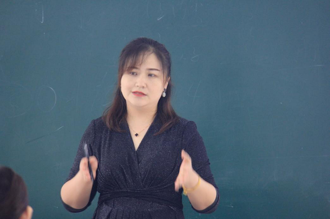 (图为刘红叶老师对新教师试讲作考核)