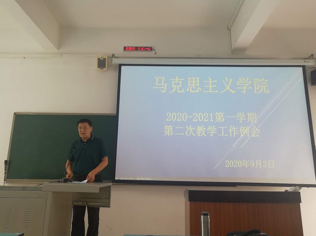 2020年9月3日,四川传媒学院马克思主义学院2020-2021第一学期第二次教学工作会议在A1教学楼202教室召开,马克思主义学院全体教职员工与会,本次会议由赵万江院长主持。