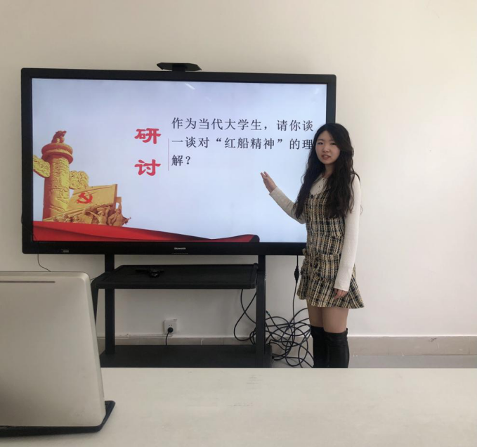 首先,教师讲述了“红船精神”的产生景、时代内涵、革命传承等内容,继而引出讨论主题“作为当代大学生,如何理解红船精神?”