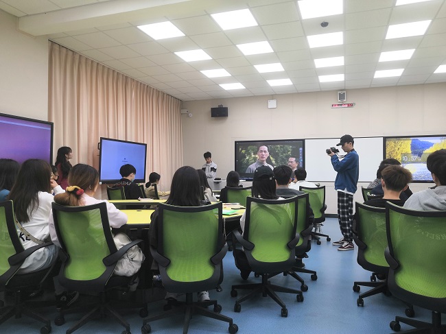 2021年4月19日上午第三节-第四节,马克思主义学院戴诗琪老师带领2019级播音与主持艺术23班在A1-201开展“讲革命故事,悟革命精神”为主题的实训活动。在老师的带领下,同学们以小组为单位,利用幻灯片、制作视频等形式围绕此次主题进行了精彩的汇报。