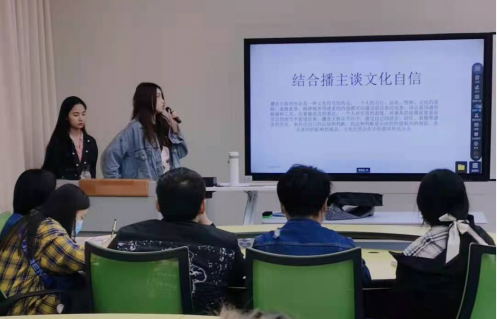 2021年4月19日,马克思主义学院刘可欣老师组织2019级环境设计03班、播音与主持艺术08班25名同学在A1-201实训室开展以“结合专业,谈文化自信”为主题的实训活动。