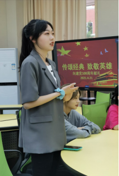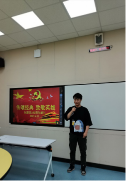 最后,老师进行总结。(1)老师对同学们的表现给予了高度评价:同学们积极准备,认真对待,实现了学生专业与思政课堂的有机结合。(2)同学们在整个活动中积极参与,讨论热烈,达到了实训活动的教学目的。(3)此次“传颂经典,致敬英雄——向建党100周年献礼”的活动在实践中更好地激发了同学们的爱国情,有利于增强学生对伟大祖国的认同感和自豪感。