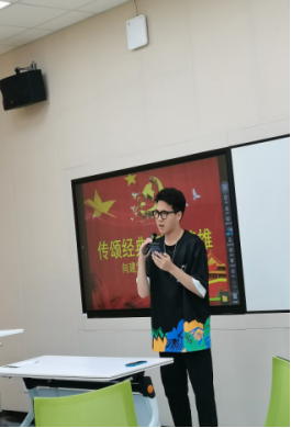 首先,老师向同学们介绍了活动流程,主要包括学生诵读经典、学生自由点评、老师总结三个环节,由王一龙同学担任本次活动的主持人进行活动的开展。