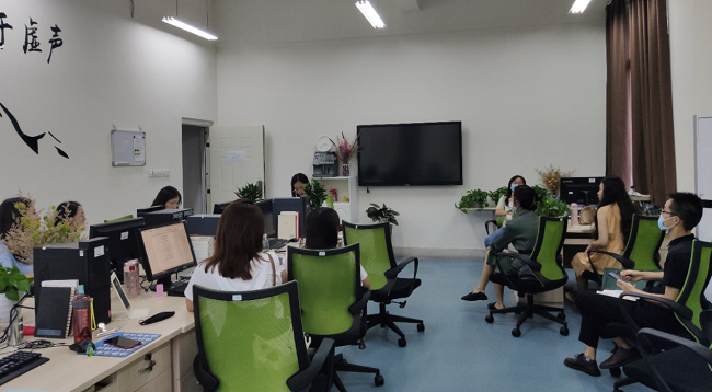 教研室主任邓可对本学期的教学工作进行安排。第一,强调各教师须重视疫情防控并做好相应的教学准备工作,以确保开学后教学工作的正常进行;第二,要求老师必须认真备课,吃透2021版本新教材,注重教师间的交流和相互帮助,发挥好集体备课的作用;第三,强调教师要加强教学管理、改进教学方法,结合传媒学生的专业特点不断提高课堂教学水平和效率;第四,要求教师按照教学进度授课,利用好教学大纲,明确教学目标,进一步加强理论与实践的结合;最后,叮嘱教师注意平时成绩和考试成绩的比例及给定,并安排磨课工作的相关事宜,激励老师们以饱满的姿态迎接新学期的到来。