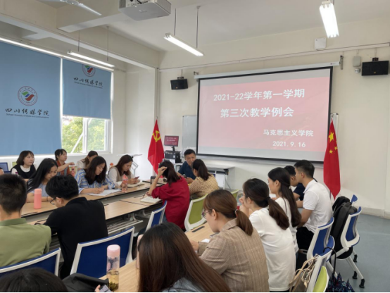 2021年9月16日下午一点,四川传媒学院马克思主义学院2021-2022学年第一学期第三次教学工作会议在218会议室召开,马克思主义学院全体教师参加,会议由赵万江院长主持。