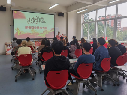 2021年10月11日,马克思主义学院教师王丹组织2019级环境艺术设计专科3班的同学在A1-217开展以“感悟四史精神力量”为主题的实训活动。