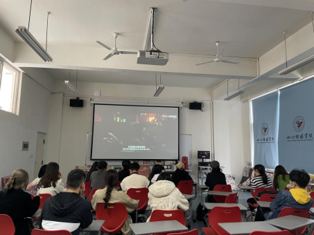 2021年10月15日,马克思主义学院教师毛宁组织2019级播音与主持艺术专业的同学在A1-217开展实训活动。此次实训活动通过观看爱国电影《八佰》来实现传承红色精神的目的。