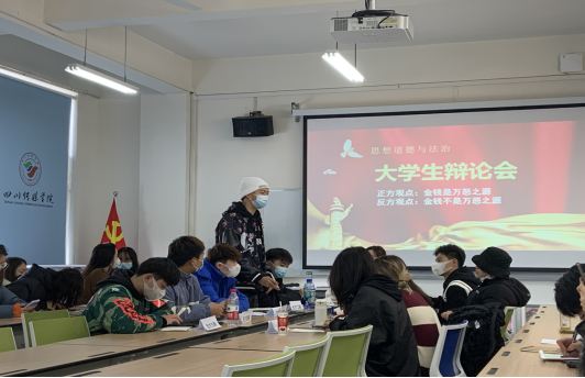 2021年11月17日上午10时25分,2021级播本2班在A1-218开展第一轮辩论赛,首先进行的是金钱是否为万恶之源的辩题讨论。