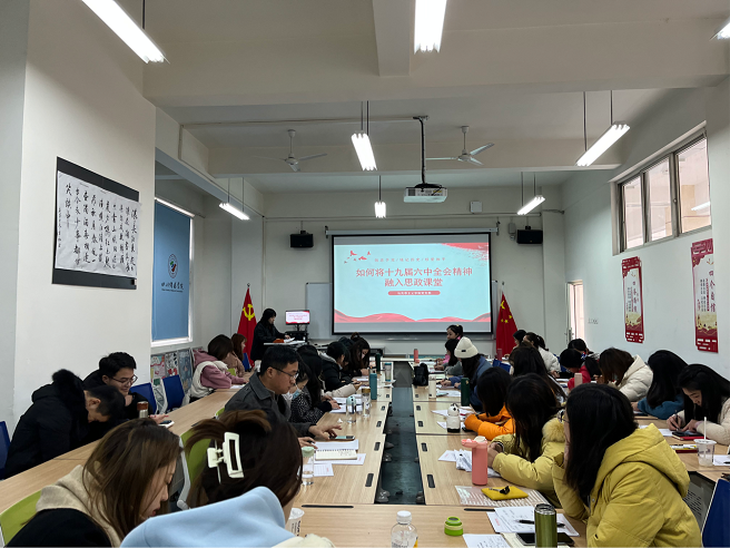 2021年12月20日,马克思主义学院党支部在218会议室开展了“如何将十九届六中全会精神融入思政课堂”的交流会。会议由支部书记长张雁鸿主持,全体党员教师参加。