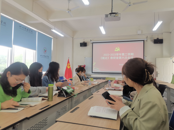2023年5月11日星期四上午,《毛泽东思想和中国特色社会主义理论体系概论》教研室2022-2023学年第二学期第六次教研活动在A1-218进行,由教研室主任刘珈余主持。