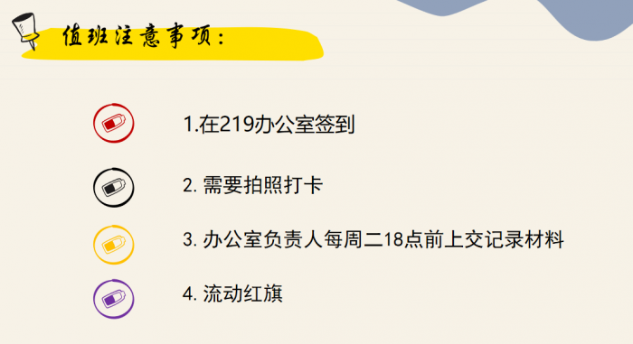 本次活动由党总支书记张雁鸿主持。为保障本学院的教学活动与党支部主题教育的顺利开展,防止教师因突发情况耽误教学工作,马克思主义学院党总支书记张雁鸿鼓励全体支部党员教师应积极发挥先锋模范作用,恪尽职守,严格按照安排参与学院制定的值班工作。随后张雁鸿书记围绕着值班签到表的设置、值班期间党员责任岗对非党员的考察任务、值班签到和拍照时间等问题作出详细的说明,并且提出将会设置流动红旗以期调动各个办公室值班的主动性和积极性。