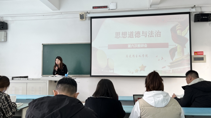 2023年11月16日上午11:10,马克思主义学院《思想道德与法治》教研室在A1-202室开展本学期第六次教研活动。本次教研活动由教研室主任刘珈余主持,教研室全体教师参加。