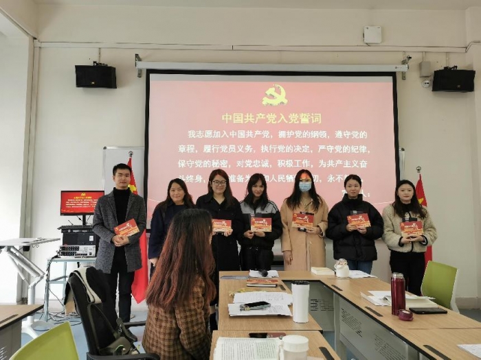最后,重温入党誓词,牢记党员身份,同过政治生日。支委会成员为支部12月过政治生日的党员颁发了“政治生日”贺卡及纪念礼物。最后在支部书记陈金霞带领下,全体党员面向党旗宣誓,再次接受入党誓词的洗礼,进一步坚定理想信念,不忘入党的初心使命。
