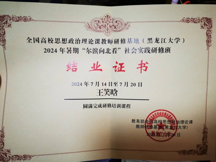 暑期伊始,我踏上了前往哈尔滨的旅程,参加由全国高校思想政治理论课教师研修基地(黑龙江大学)精心策划的2024年“尔滨向北看”主题实践研修班。这不仅是一次地理上的北上,更是一场心灵与知识的深度旅行,让我在历史与现实的交汇中,对思政课的教学有了全新的认识和感悟。