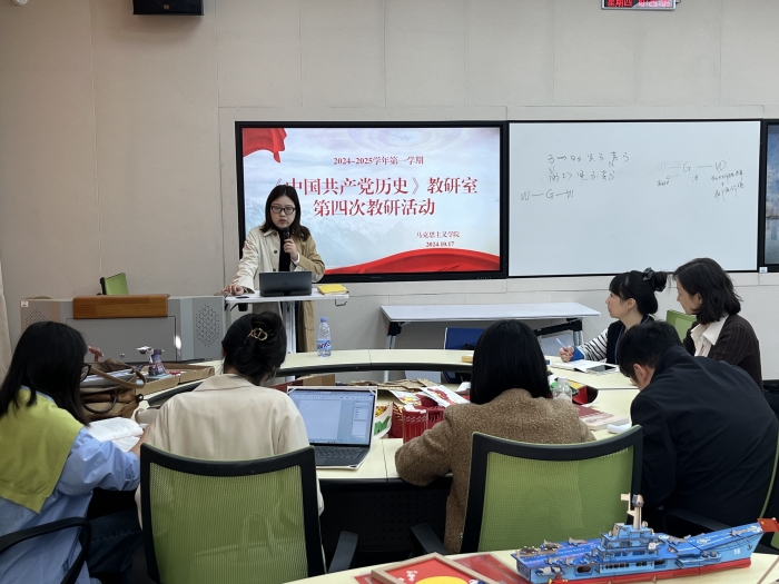 2024年10月17日,在A1——201教室,《中国共产党历史》教研室开展了第四次教研活动。此次活动由杨恩琪老师主持。