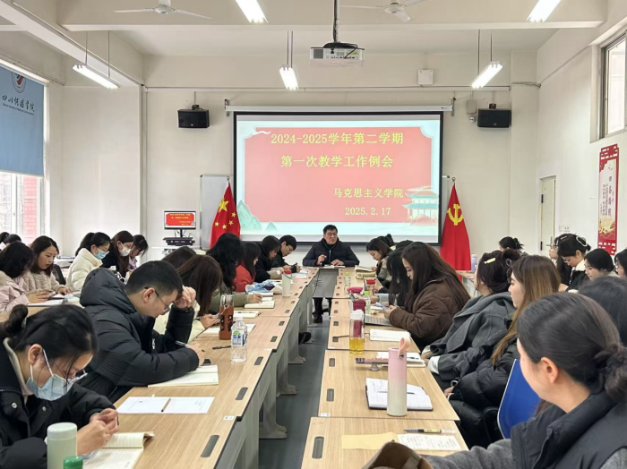 2025年2月17日下午,四川传媒学院马克思主义学院于东区第一教学楼218会议室开展了2024-2025学年第二学期第一次教学工作例会。会议由赵万江院长主持,学院全体教师参加。