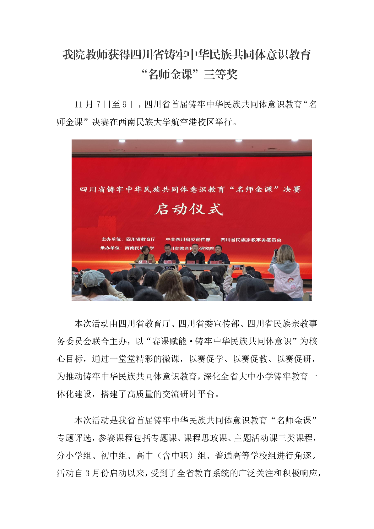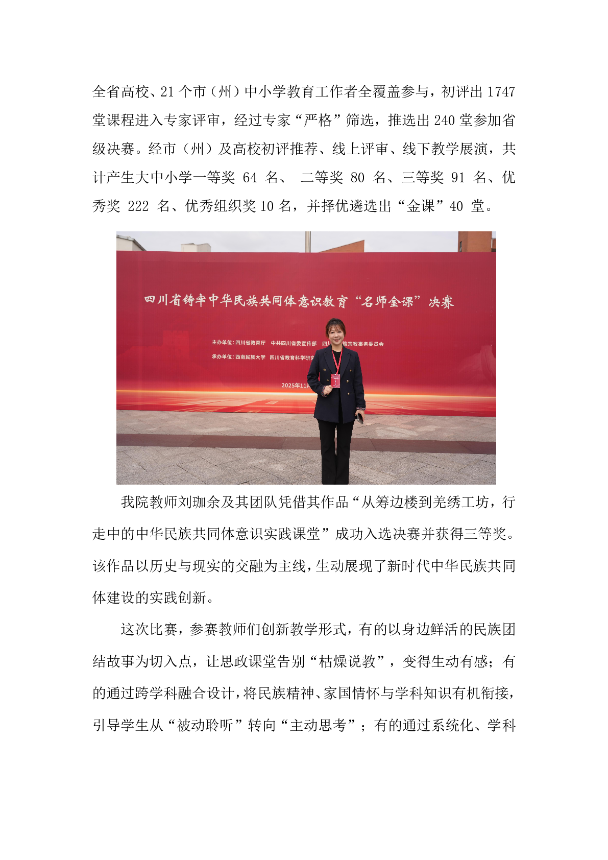 我院教师获得四川省铸牢中华民族共同体意识教育“名师金课”三等奖